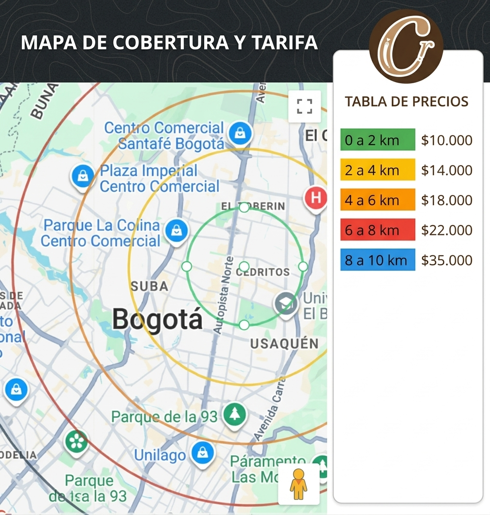 Realizamos nuestras entregas en Bogotá a través de transporte propio o mediante aplicaciones de mensajería como Uber, DiDi, según disponibilidad.